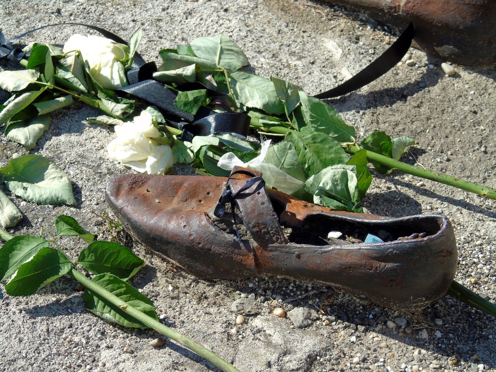 contribution to the final solution for here, Hungarian Jews were brought down to the river in the closing months of WWII, told to strip and
